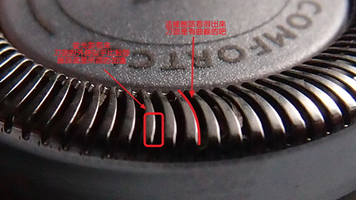 除了有圓滑的弧度,刀頭的鋼網還是有曲線的,曲線加邊應該可以看得出來了吧,