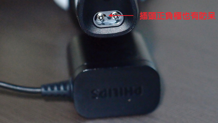 接下來就是充電了,充電時請留意機身插頭也有正負極差別,所以廠商也有做防呆設計,如果插錯方向不要硬插,換個方向就好了。