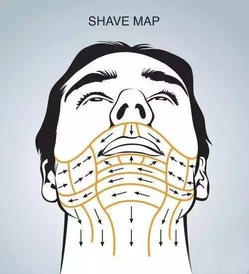 最後跟大家分享刮鬍子的正確刮法,在不同的部位,要有不同的刮鬍方向喔。