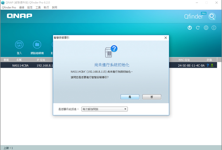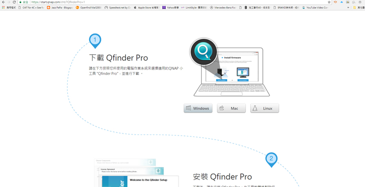 產品採用相當直覺簡單的系統安裝方式,首先要從網路下載 Qfinder Pro安裝軟體