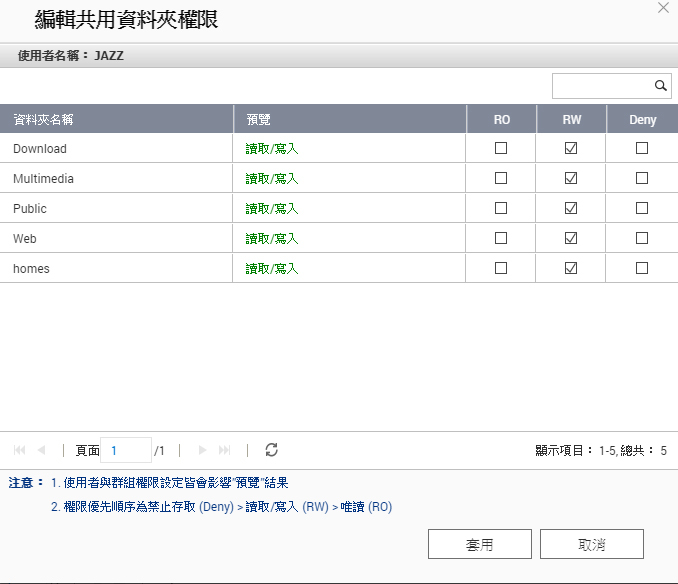 完成登入動作後,就能看到NAS資料夾內使用者權限看得到的資料啦