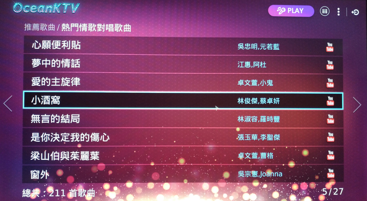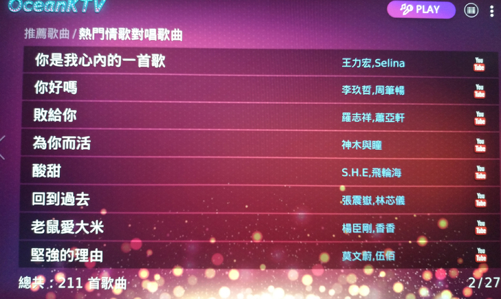 礙於版權問題,所有伴唱影片都是透過YouTube即時串流播放的