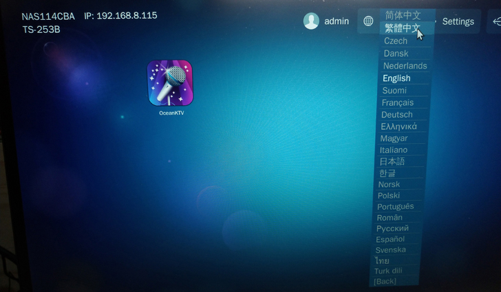 系統預設語言是英文,大家可以將它改成中文;圖中可以看到筆者之前安裝的OceanKTV APP