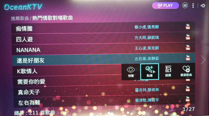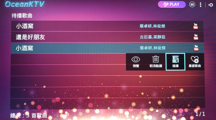 可以隨時插播或取消,可惜遙控器上沒有”嘎”歌鍵 ^^