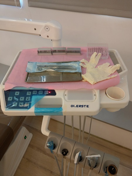 所有的檢查器械都被包上一層保護膜擺放得相當整齊