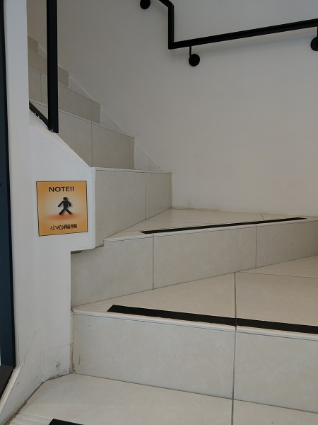 在樓梯旁的牆面上還貼著可愛圖示"小心階梯"不由得給他們一個讚