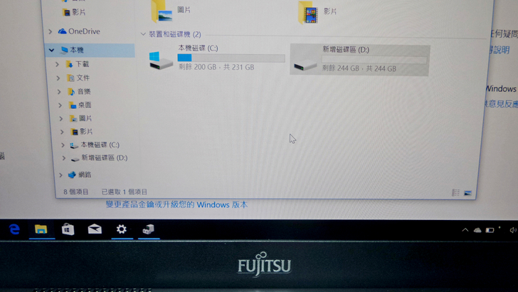 【▼】i7版本搭載的儲存裝置是M.2 PCIe NVMe介面的SSD,容量為512GB(i5版本是搭配),預設已經分割成C、D兩磁區,當然若只想用單一磁區的話,也可以重新分割磁區,不過資料就得先備份出來囉~