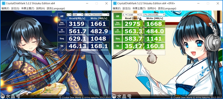 【▼】以CrystalDiskMark作1GB檔案大小讀寫測試,隨機循序讀寫分別為3159MB/s與1661MB/s,0Fill循序讀寫分別為2975MB/s與1688MB/s,讀取都破千算是性能非常好的SSD。