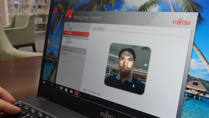 【▼】Workplace Protect除了特殊的掌靜脈識別外,螢幕上頭的視訊鏡頭也可以用來當人臉辨識,設定方式只要將臉放在圓框內。