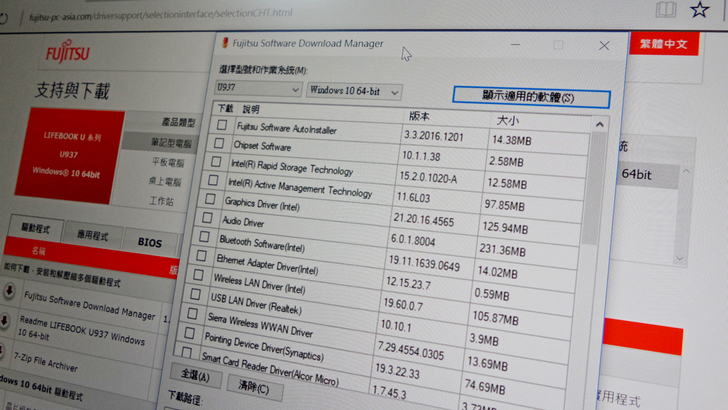 【▼】另外Fujitsu在下載驅動或應用程式的作法,小編不得不提,因為只要下載Fujitsu Software Download Manager後,全選就可以將驅動與應用程式一次下載完,不用再一個一個下載。