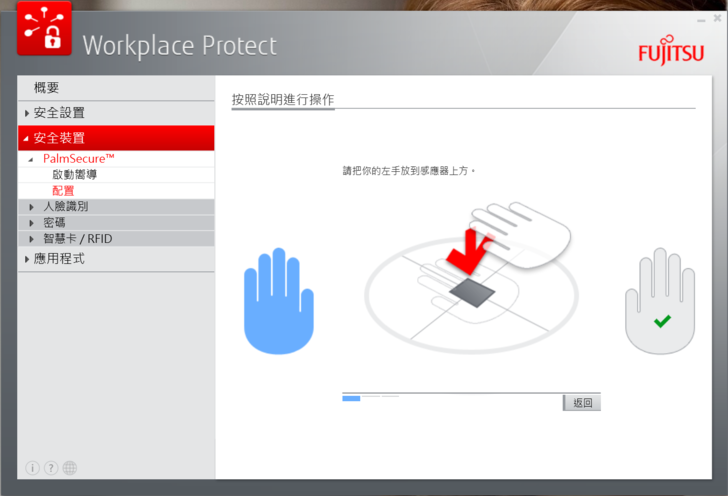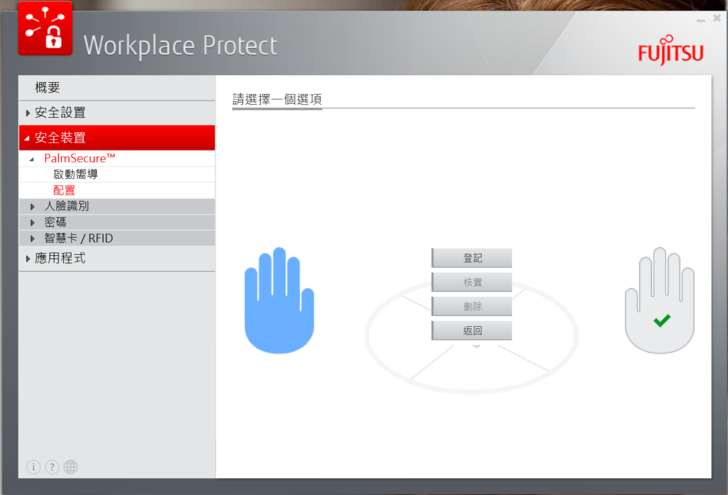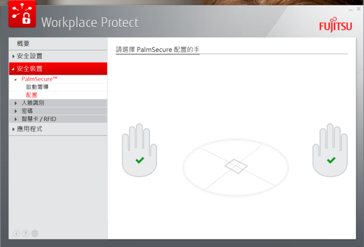 【▼】掌靜脈登記成功後,就會呈現以下畫面,左右手皆能對Fujitsu LIFEBOOK U937來解鎖了。