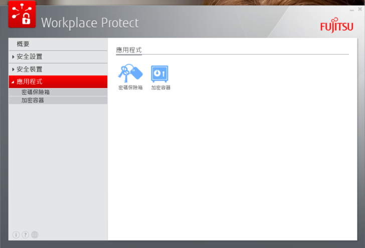 【▼】針對應用程式 Workplace Protect也提供了密碼保險箱以及加密容器,前者可幫您管理任何密碼,之後遇到要密碼時可自動輸入,後者則是會建立虛擬磁碟機,可將私密檔案放在裡面。