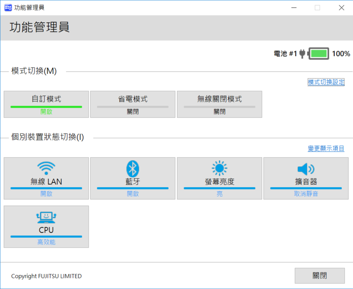 【▼】系統內設有 Function Manager,可以輕鬆開啟 Fujitsu LIFEBOOK U937各項設定。