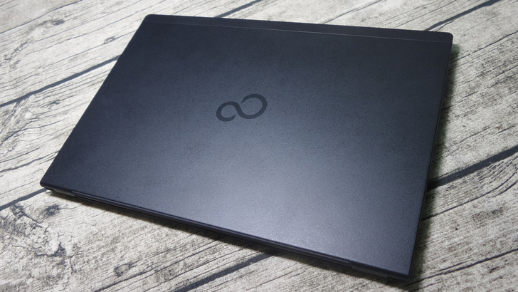 【▼】拉近一看,不得了!這背蓋好酷好炫又好硬阿,難道這就是傳說中航太工業等級-鎂鋰合金壓鑄而成的 Fujitsu LIFEBOOK U937嗎?太強大了,配合純黑Logo的磨砂質感,能切切實實承受單點35公斤壓力與單面200公斤力的擠壓,保護底下的螢幕與機身零件。