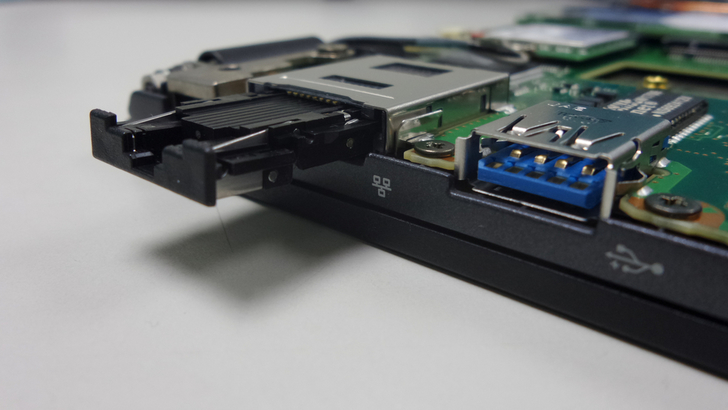 【▼】Fujitsu LIFEBOOK U937能抗衝擊的RJ45網路孔收合模式。