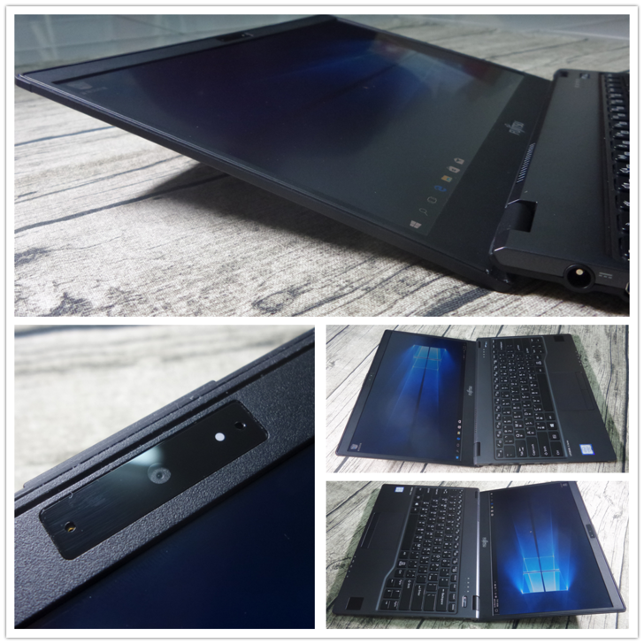 【▼】在Fujitsu LIFEBOOK U937顯示的部分,13.3吋的 BL LED窄邊框螢幕,螢幕轉軸亦使用合金打造,能折疊將近170度角,具有 FHD 1920x1080p 高解析 與 330 nits高亮度,並有防眩光塗層,無論從哪個角度觀看,都看得一清二楚。當然身為商務機種一定少不了視訊鏡頭,鏡頭兩旁內建雙數位陣列式麥克風,收音不容易受到外在干擾而失真,只是畫質只有HD等級,注重拍照什麼的就免了。