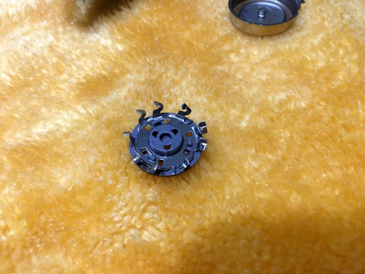 頂部是與刮鬍刀頭的接口,可以看得出刀頭與握柄連接要注意有方向性。