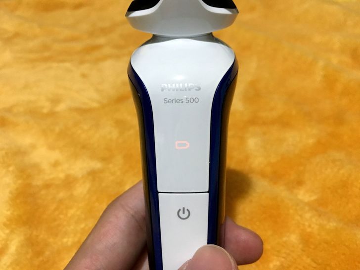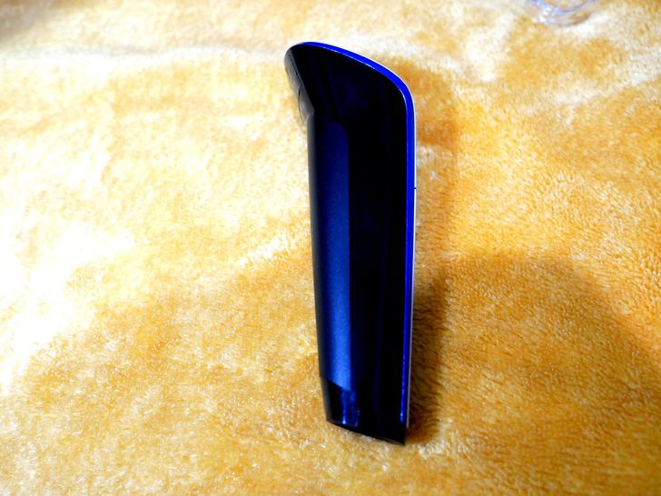 握柄上粗下細兩側弧形切削,好拿好握。 正面有電源開關,按一下開啟、再按一下關閉,電源開關的正上方約1cm處有個隱藏式Led指示燈。