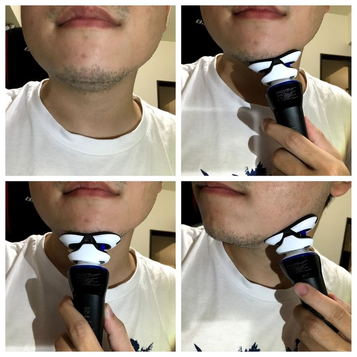 刻意留了幾天鬍子,可以看到順翼貼面在不同位置都可以符合臉部角度完美貼合!刮完皮膚完全不會有不適感!