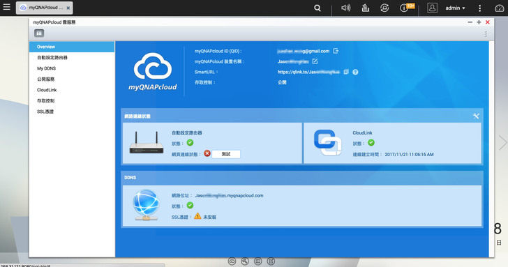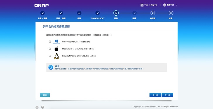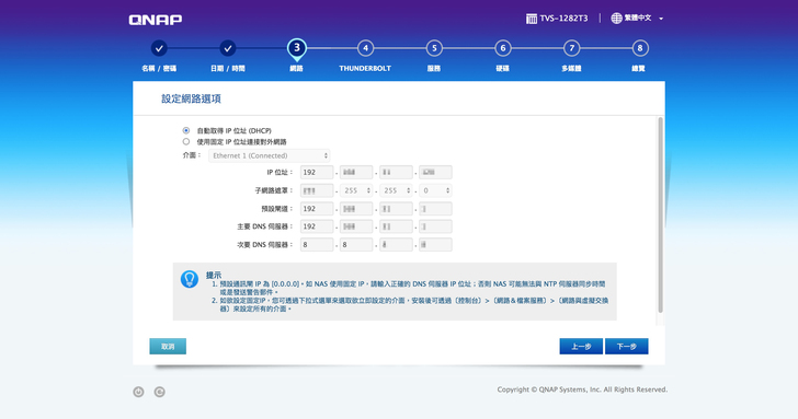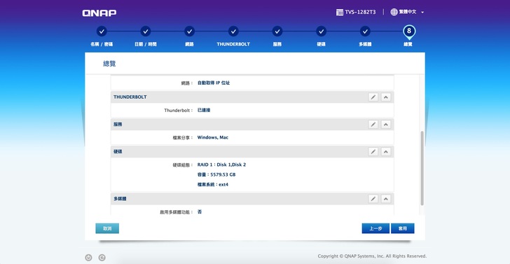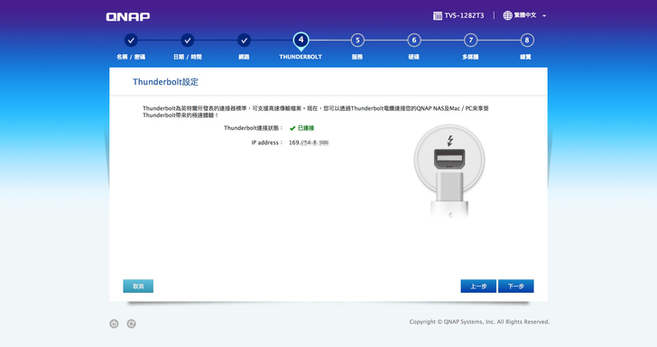 街上Thunderbolt線,連上網後,進入QNAP的設定介面,