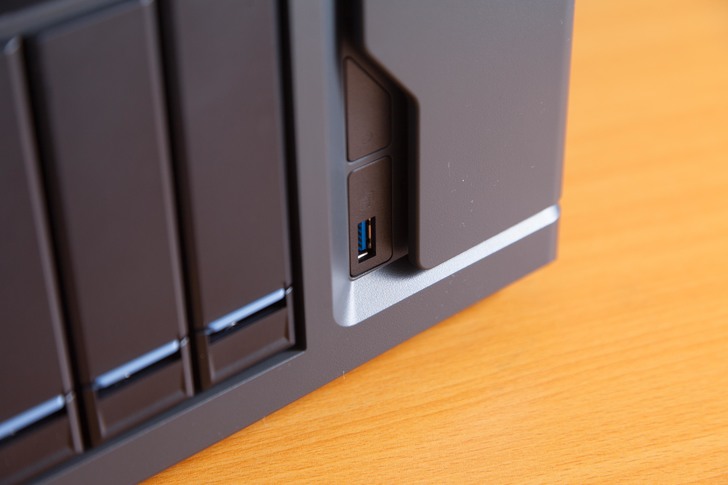 前方有一個 USB 3.0的插槽,提供一個比較機動性的複製備份檔案的選擇