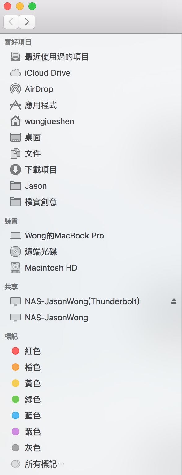 連接Thunderbolt的時候,在Finder的側邊欄就會出現一個(Thunderbolt)的連接端選項,