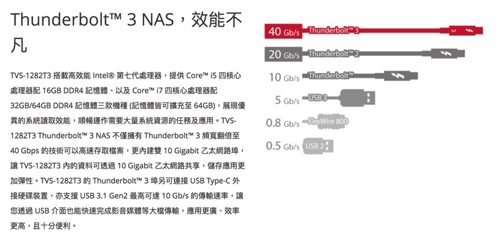 據我所知,目前有出到Thunderbolt 3的 NAS 應該只有QNAP吧!