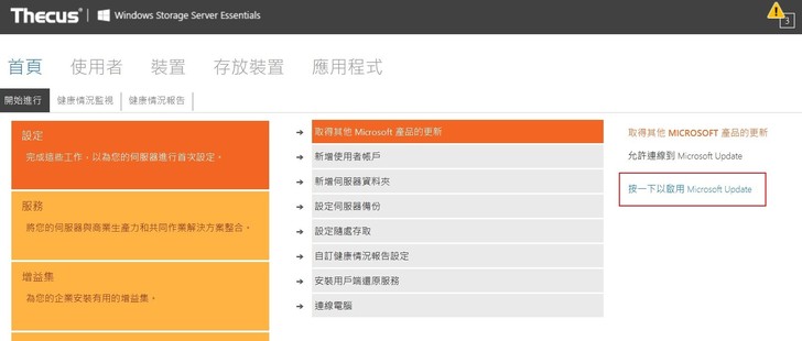 之後按一下紅框框起來的地方,啟用Microsoft Update。
