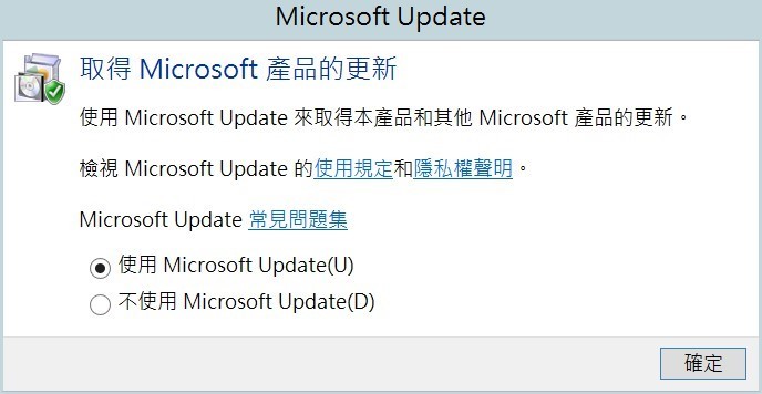 請選擇使用Microsoft Update,然後按下確定,因為NAS的安全性很重要,而Microsoft在上面會經常有安全性的更新。