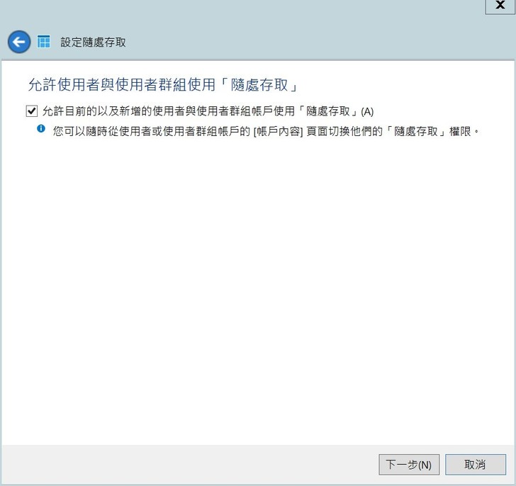 一樣在設定裡選擇「設定隨處存取」,然後選「按一下設一下設定隨處存取」。