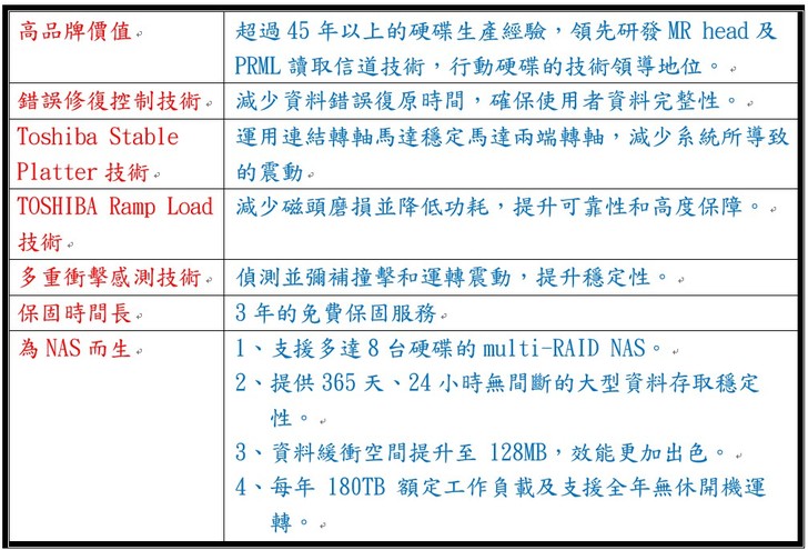 我將選擇TOSHIBA N300的原因寫下來整理成表格,如下: