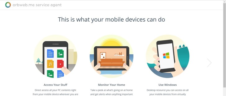 Orbweb.me除了可以用app存取你的電腦,也可以直接用瀏覽器存取。