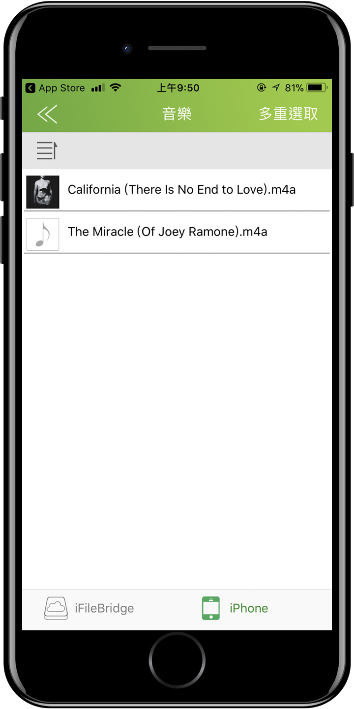 ▲ 原本在 iPhone 的內部儲存區,透過 iFileBridge 傳檔到AH790的外部儲存區。