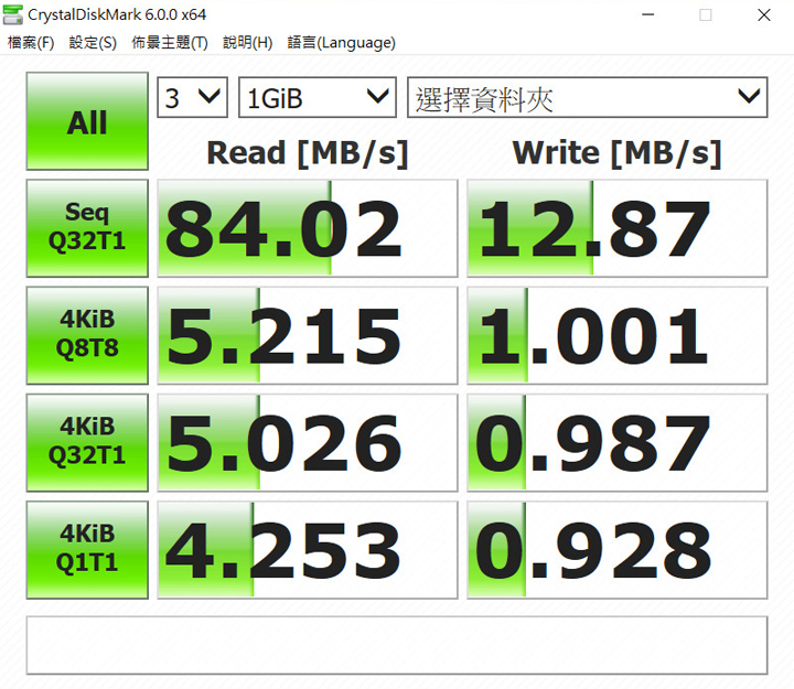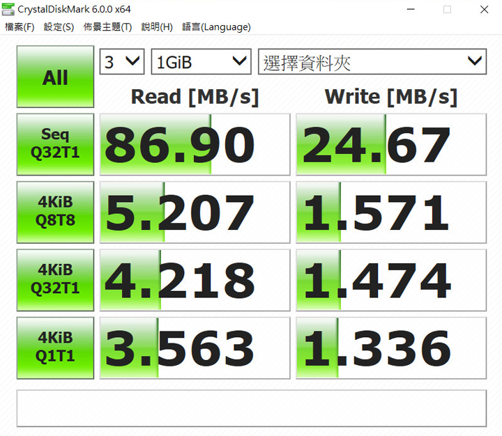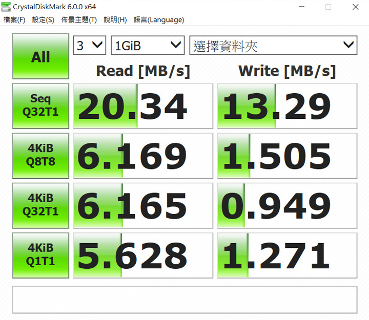 ▲ 讀寫測試的數據才是兩者較量的重點,畢竟沒對照怎能知道效能好不好,兩者同樣為 64GB ,以上為 AH790 在 CrystalDiskMark 測得的成績。
