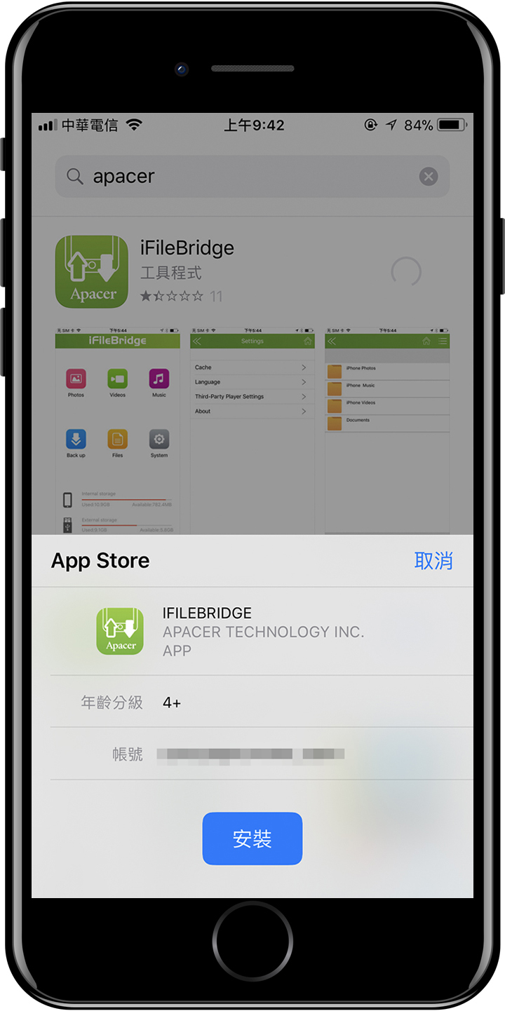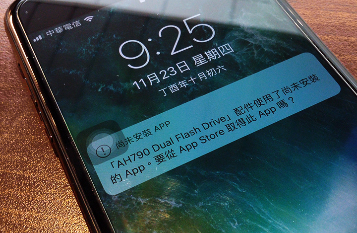 ▲ Lightning介面好處是無正反差別,因此當AH790插上手機時,會自動搜尋『 iFileBridge 』對應的APP應用程式。