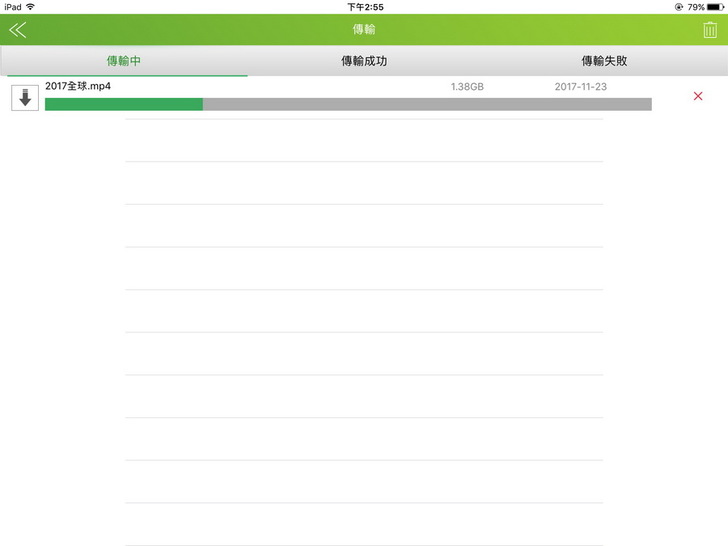 ▼ 複製檔案到 AH790,也是以條狀來顯示傳輸狀態(箭頭向上是傳到外部儲存),成功會顯示綠色小勾勾。