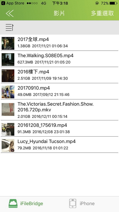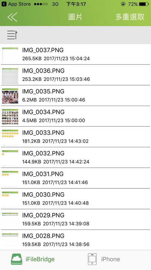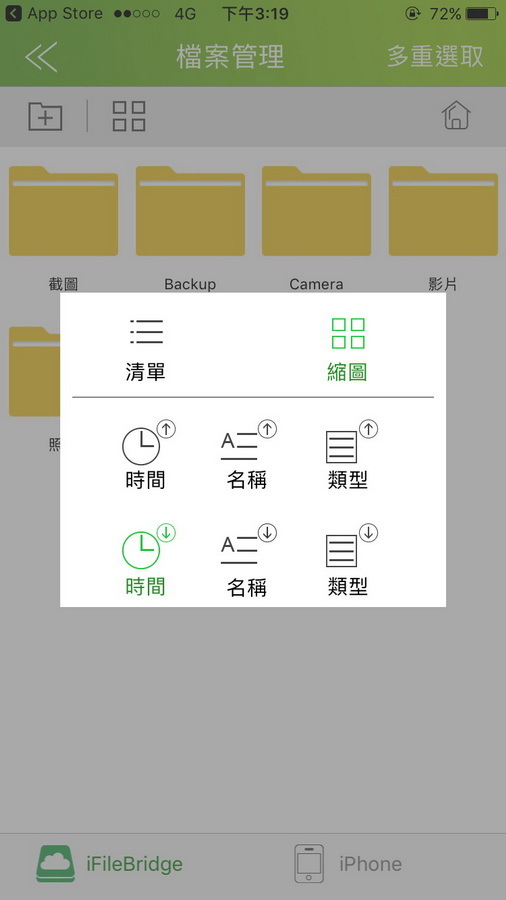 iFileBridge APP操作介面簡單直覺,而且 預覽及執行速度 非常快,筆者用過別家類似的產品,光是執行它的APP讀取照片產生預覽,慢到根本覺得手機已經當機。
