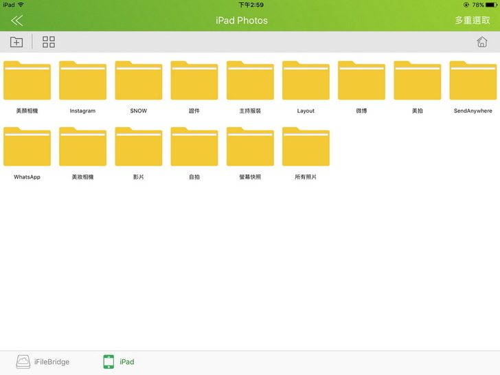 ▼ 檔案管理:直接點選下方的 iFileBridge及iPad。