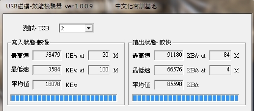測試軟體:USB磁碟-效能檢驗器、ATTO Disk Benchmark,兩款測試 讀取與寫入 皆有不錯的表現。