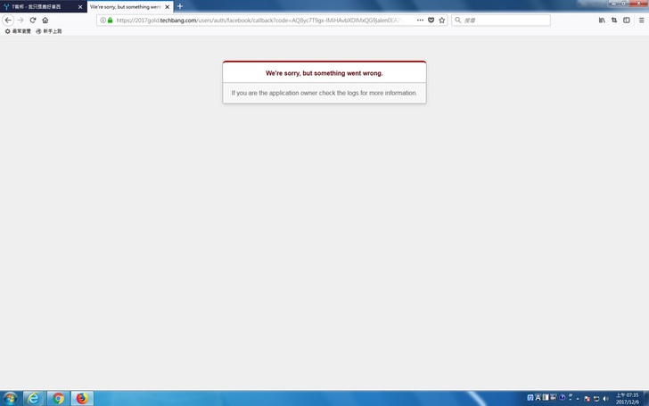 [問題] 臉書帳號可登入T客邦 但不能登入投2017科技趨勢金獎 T客邦聯合站務中心 · 楊景林 · 發表於 2017-12-06 07:40 · · 檢舉 列印版 twitter plurk 3.1萬閱讀次數 我用臉書帳號登入T客邦 從T客邦連結的網頁到2017科技趨勢金獎 不能直接投票 要我再登入 結果出現 讚 收藏 快速回應 引言回應 登入來回應 header home