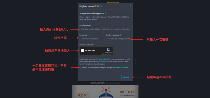 首先先註冊Coinpot信箱