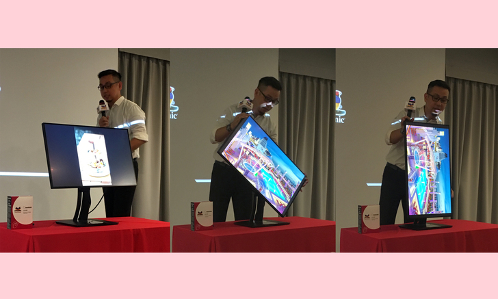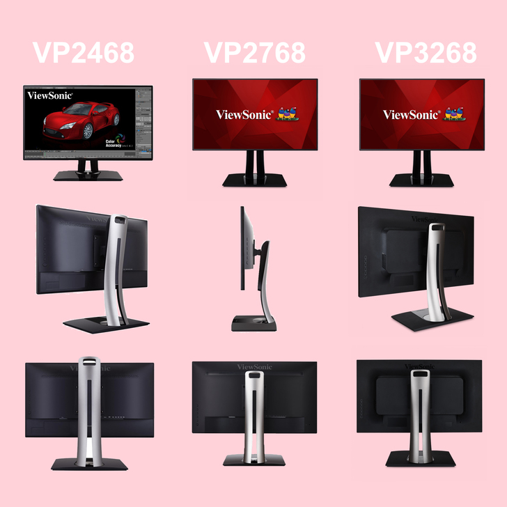 VP系列不但可以調整螢幕高度,還可以旋轉成直式,而且螢幕轉直後畫面也會自動轉正。螢幕幾乎無邊框的設計,連viewsonic的三隻小鳥logo都沒有放,因為希望使用者能專注在螢幕畫面上,不要被影響。