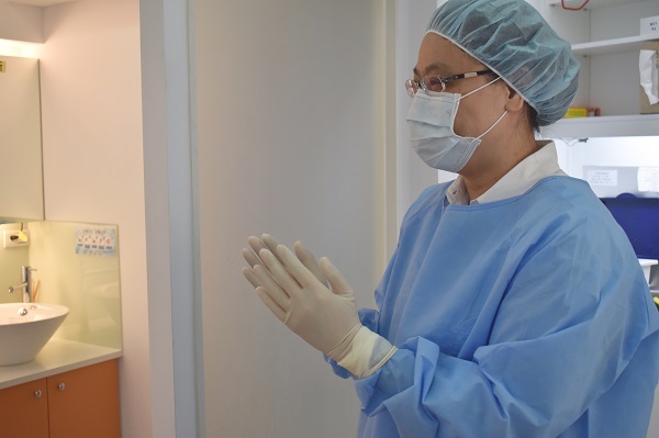 全程診治過程還需要穿戴上手術帽、穿手術衣與口罩