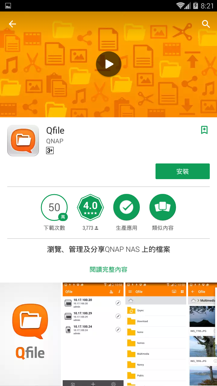 體驗了三個工具後,真的是覺得 QNAP 所提供的工具都十分實用!拜智慧型裝置所賜,現今,行動辦公也十分普通,倘若 QNAP 也可以的話,那就太好了!才一說完,竟然發現 APP 裡面有 Qfile 和 Qmanager 二支程式,馬上下載來體驗看看。