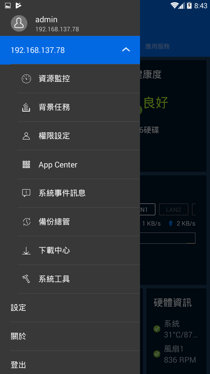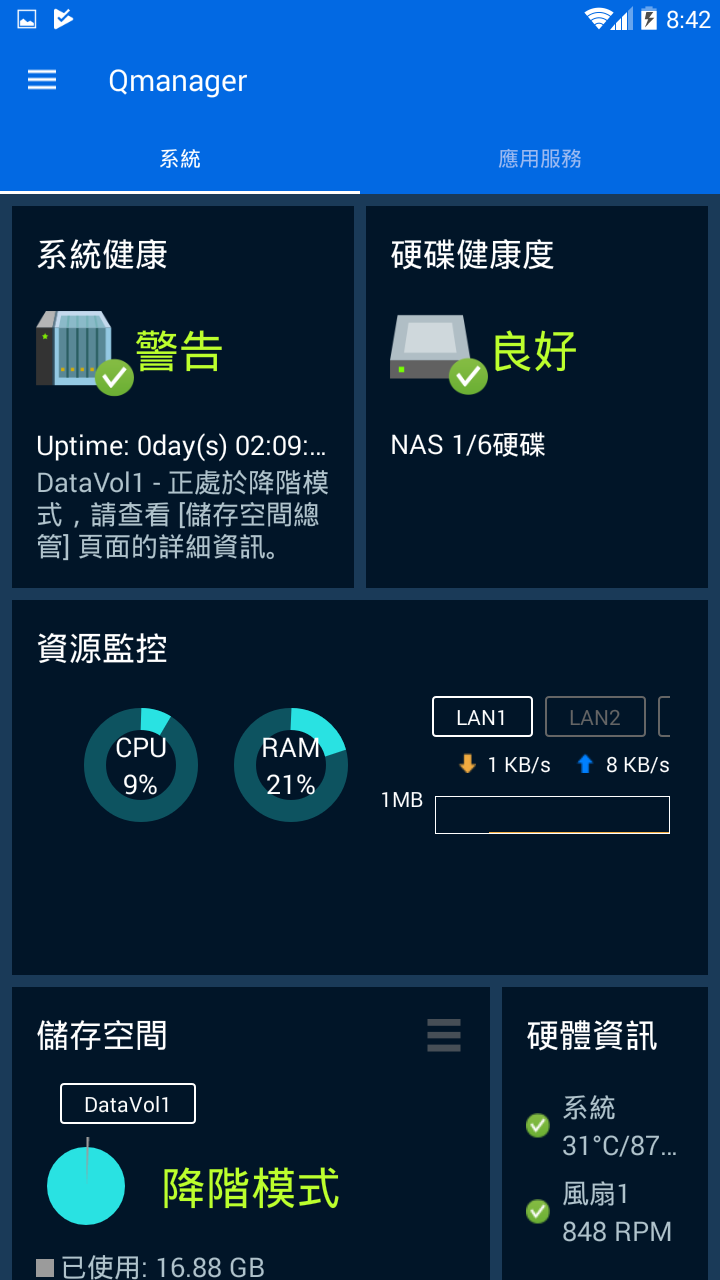 ▲ 連結成功,即可在智慧型裝置中,觀看 NAS 運作狀況