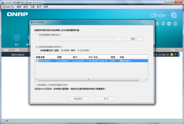 ▲ 開啟 Qfinder Pro 來管理 TS-453B(若偵測到有新的韌體,也可直接更新)