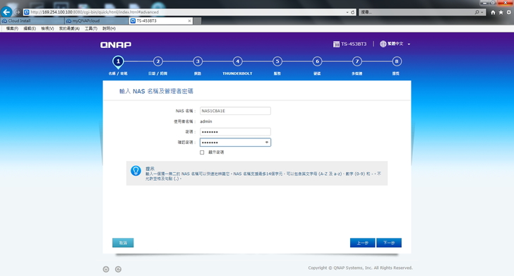 ▲ 設定 NAS 名稱以及設定 admin 密碼