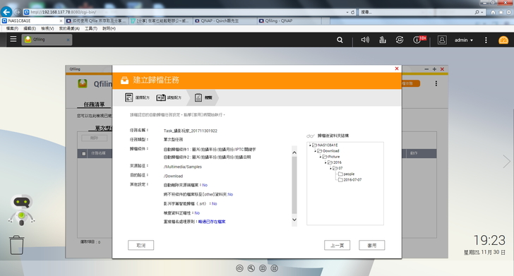 大致體驗了 Qsirch 功能後,接下來,由於本人常常外出拍照,從以前到現在都有一個動作要做,就是回到家裡後將相機內照片傳至電腦,然後還要分類/整理。如果能有一工具能夠自動化做到上述分類/整理動作,那不是很方便? QNAP 也聽到大家心聲,所以也一併推出 Qfiling,它能自動幫您做歸檔動作,真的太好了!馬上來體驗。