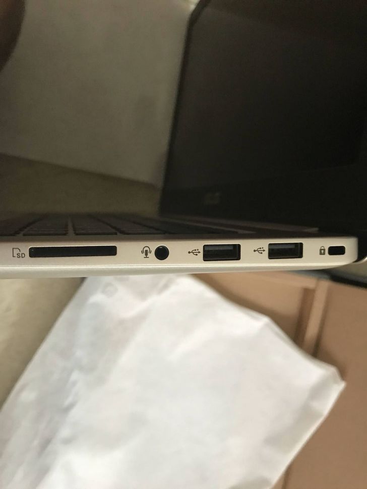 機身介面,右側為防盜鎖孔、USB*2、3.5mm耳麥孔和SD讀卡機