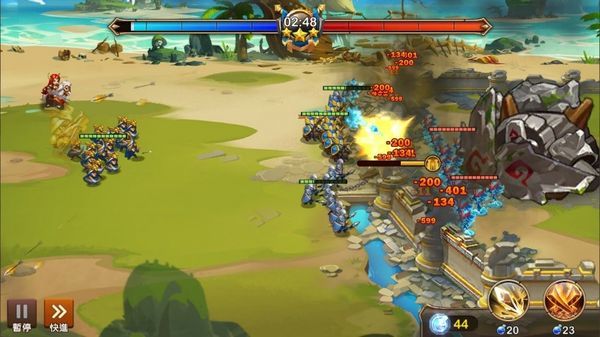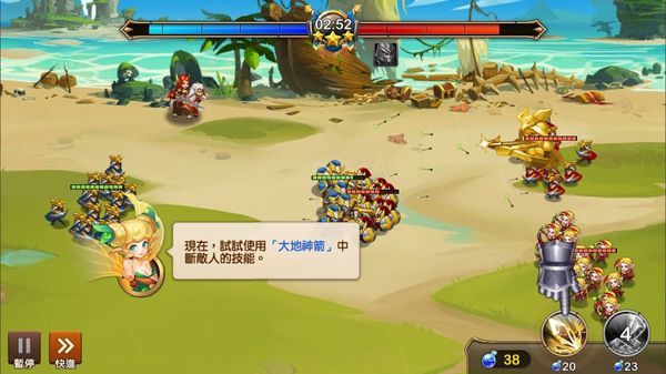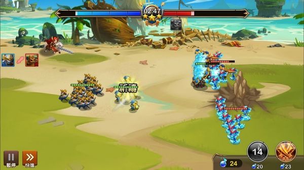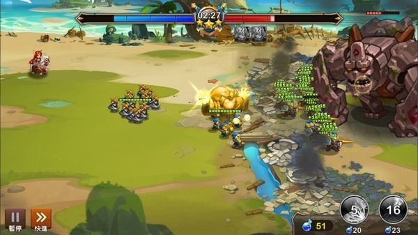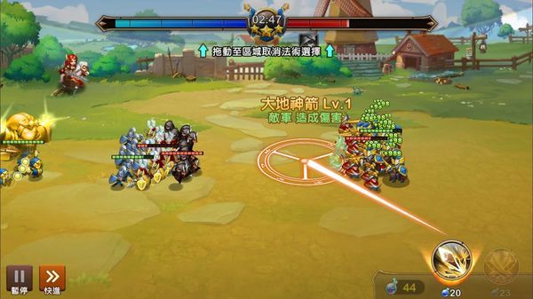 遊戲採兵種全自動攻擊,我們只要在適合的時機透過拖曳施放來進行技能的施放就可以了,是不是很方便呢XD